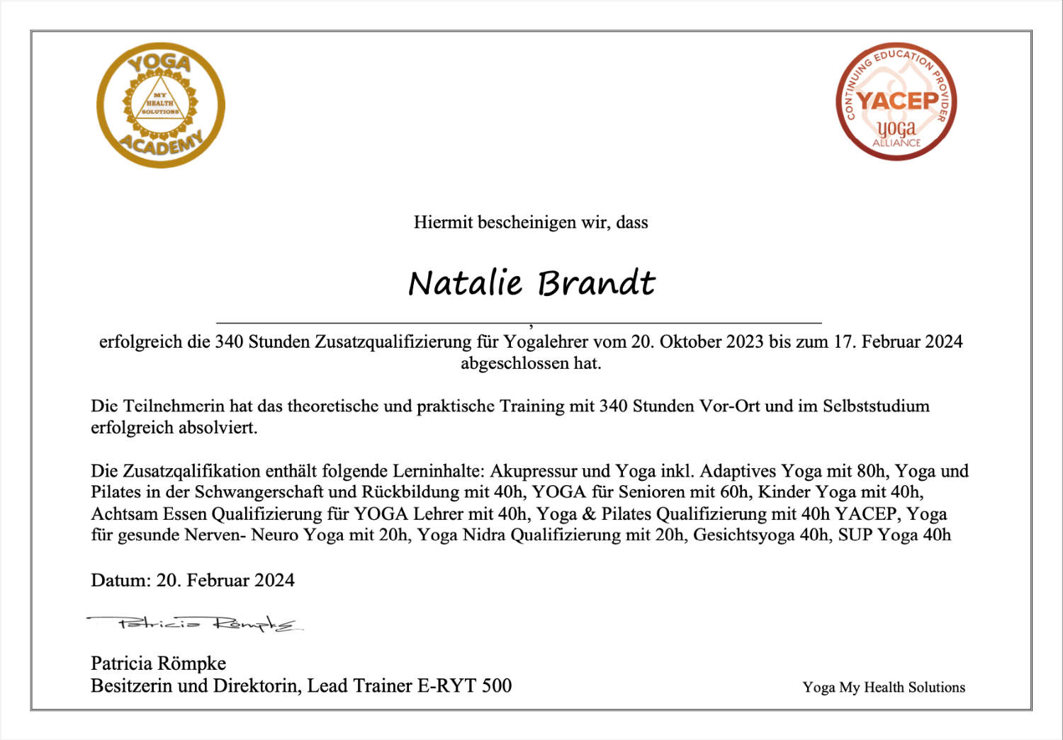 Nach meiner Ausbildung an international anerkannten Schulen habe ich nicht nur die Technik verinnerlicht, sondern auch die Befähigung erhalten, zukünftige Lehrer/innen auszubilden. Dabei lege ich besonderen Wert auf Tiefe, Authentizität und Respekt gegenüber der yogischen Tradition.